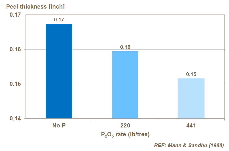Over supply of phosphorus can reduce peel thickness, as study with mandarins in India shows. Therefore it is important to maintain the right balance between N and P rates.