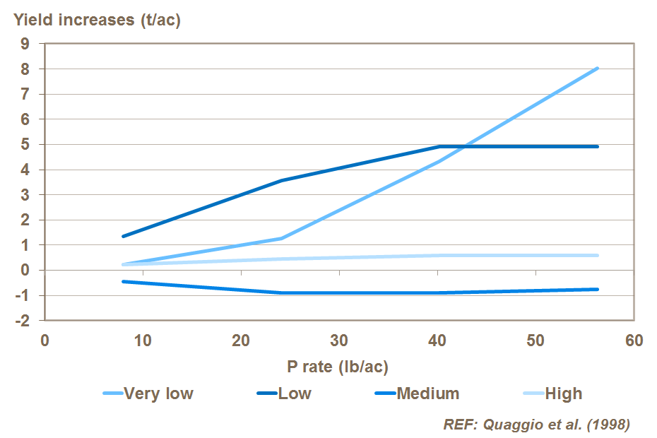 Soils low in phosphate need phosphorus applications, as trials with oranges and lemons in Brazil show. Phosphate uptake occurs throughout the growth period, after flowering and through late fruit maturity. Good availability is important during periods of active root growth e.g. springtime and in between vegetative flushes.