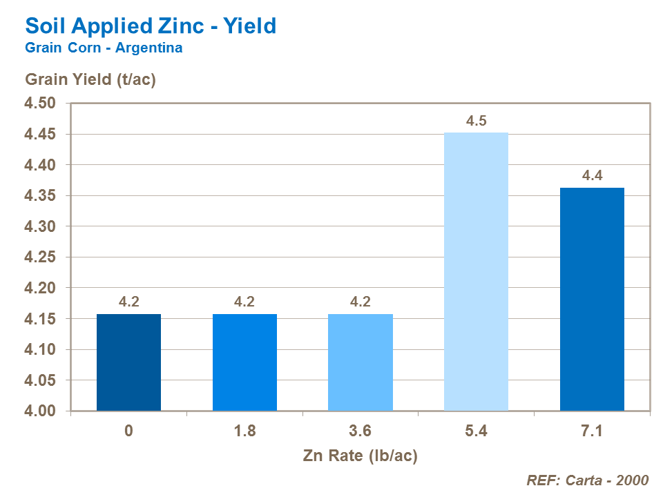 Zinc provides the largest yield responses in the greatest number of trials. The strong responses seen when zinc is applied to the seed, is largely due to zinc’s effects on early root and shoot growth and the subsequent increase of leaf production. However, high yield responses also come from foliar zinc applied to the leaf.