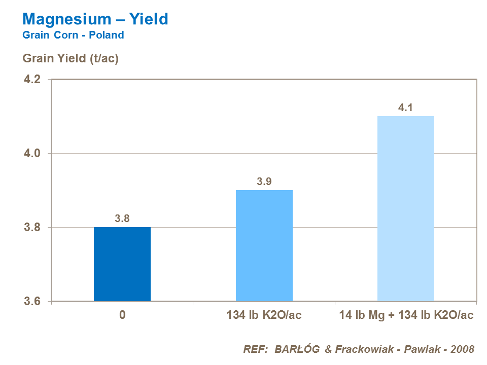 Magnesium is required during peak periods of growth with most intensive uptake starting at around the V5 stage. Uptake continues to maturity and crops need a continuous supply of magnesium to support growth. Where magnesium is in short supply, applications will support better growth and higher yields.