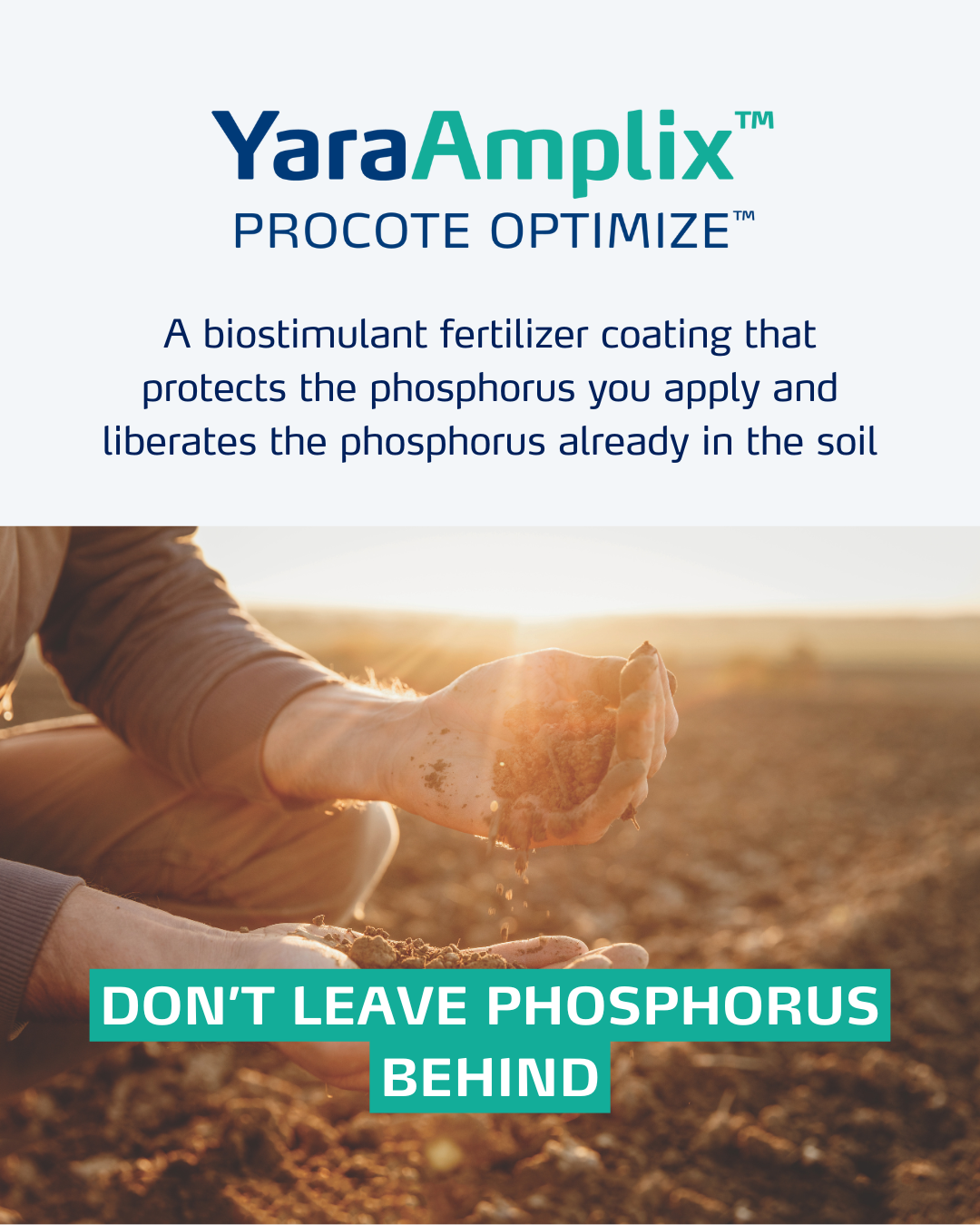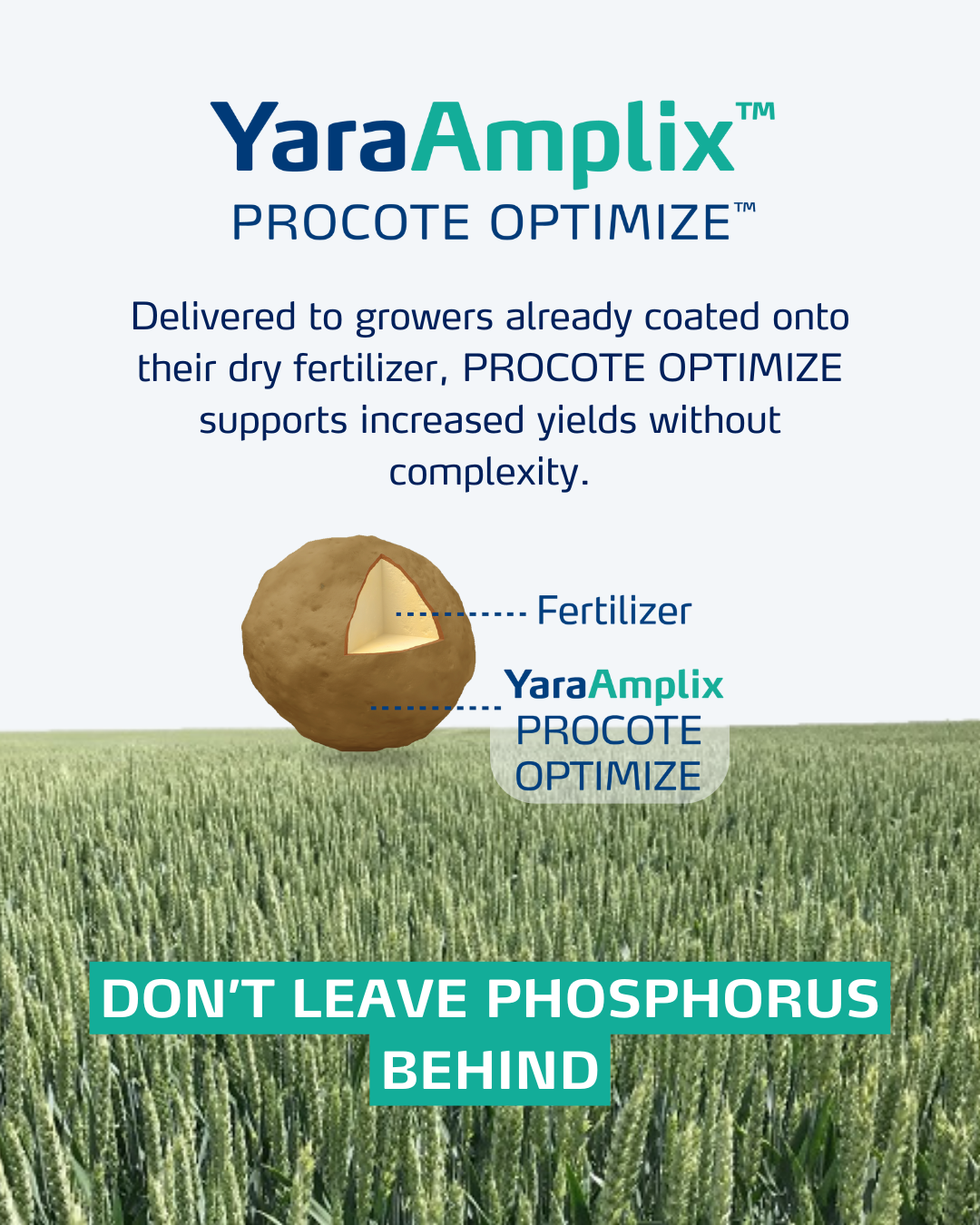 Delivered to growers already coated onto their dry fertilizer, YaraAmplix PROCOTE OPTIMIZE supports increased yields without complexity. Don't leave phosphorus behind.