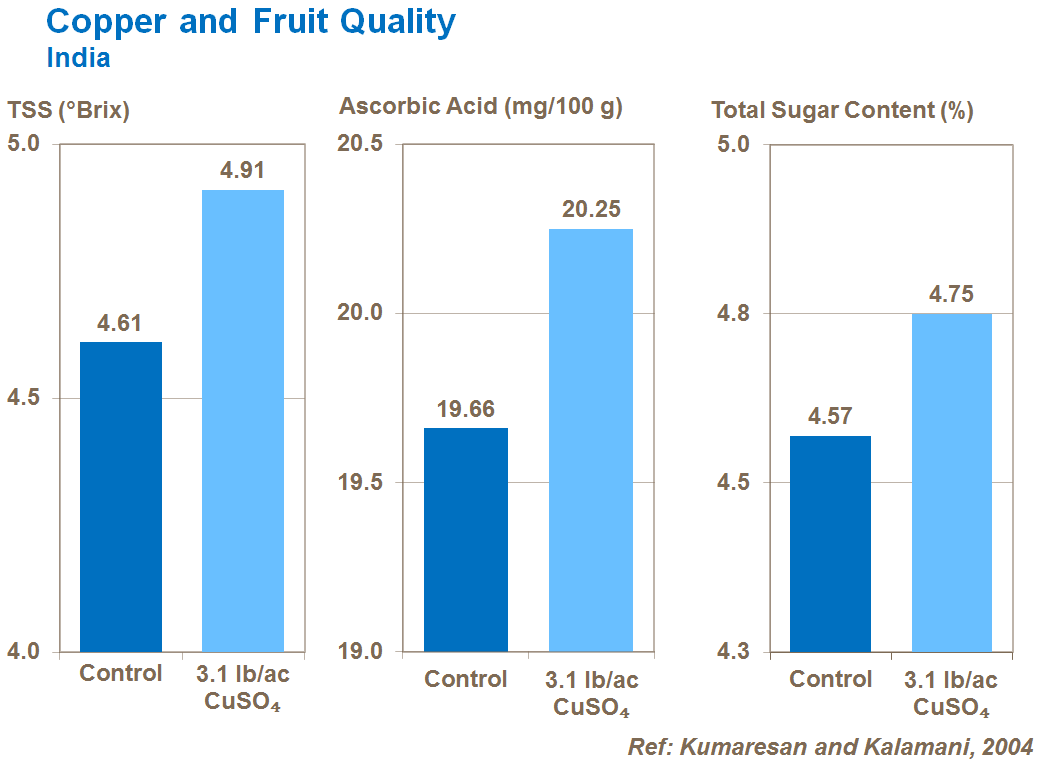 Application of Copper in deficient soils improves fruit quality.
