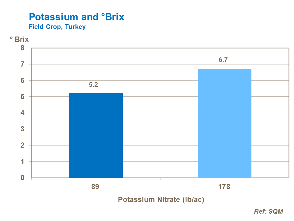 Potassium also increases TSS within the tomato. As well as improving processed tomato product quality, this has benefits in terms of improved taste and storage of fresh tomatoes.
