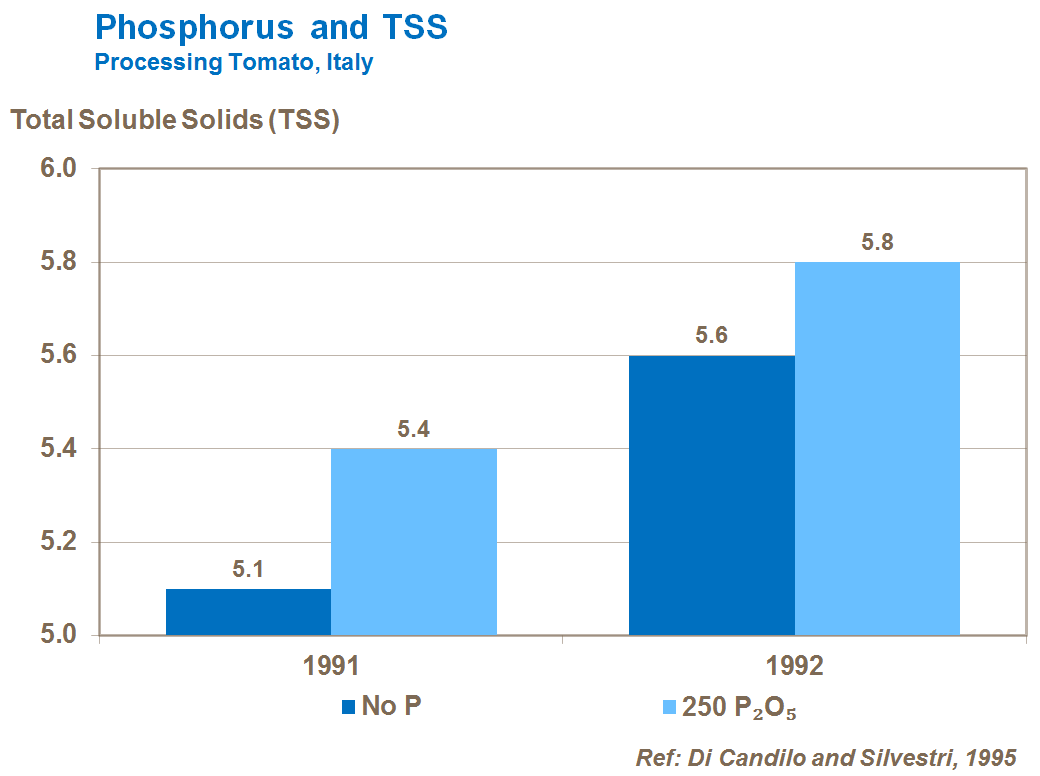 Phosphorus ensures a significant increase in TSS, improving tomato processing quality.