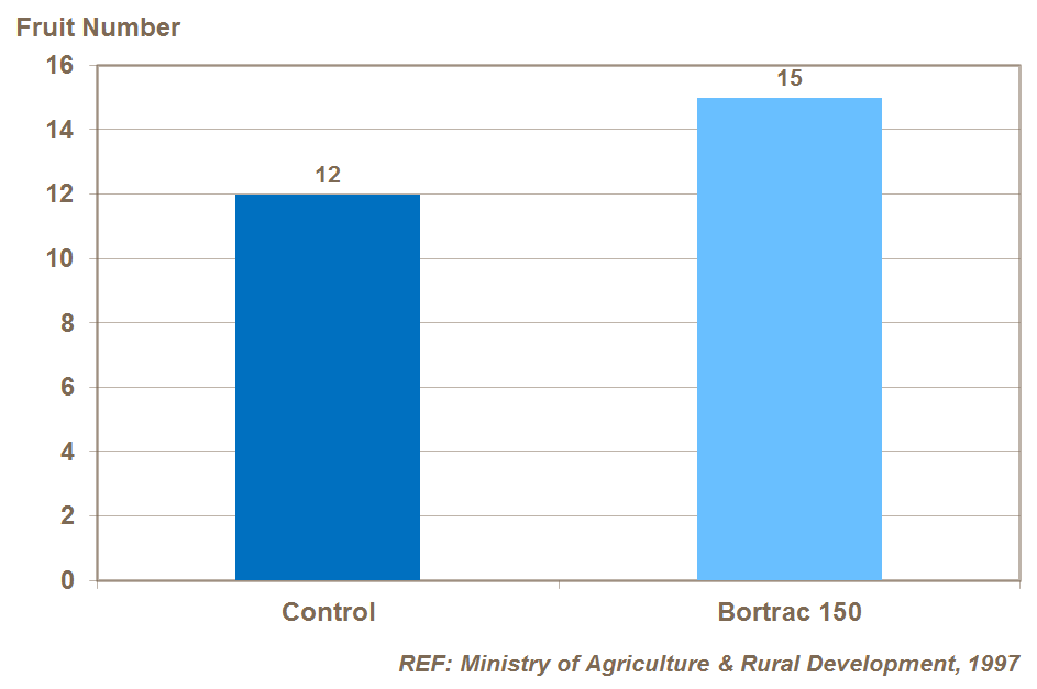 Pre-flowering applications ensure good fruit set and full yield potentials are achieved. In addition, while boron is quickly taken up from the soil, it is relatively immobile in the plant, so foliar sprays are often more effective (trials in Vietnam).