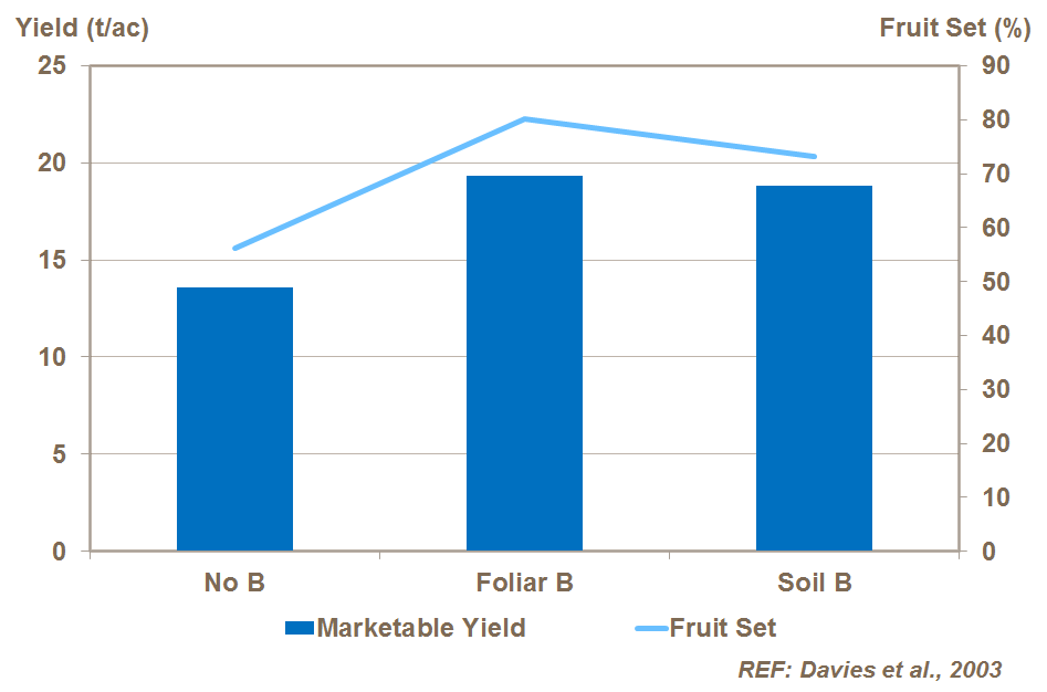 Boron also has an important role in pollen germination and fruit set, therefore boron nutrition affects yield, as shown in US studies.