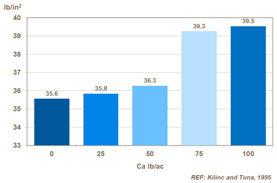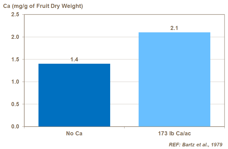 Calcium is needed to maintain good fruit structure and quality. Adequate supplies improve tomato firmness and increases TSS, as shown in studies in Turkey.