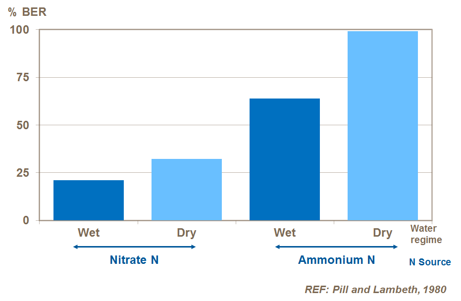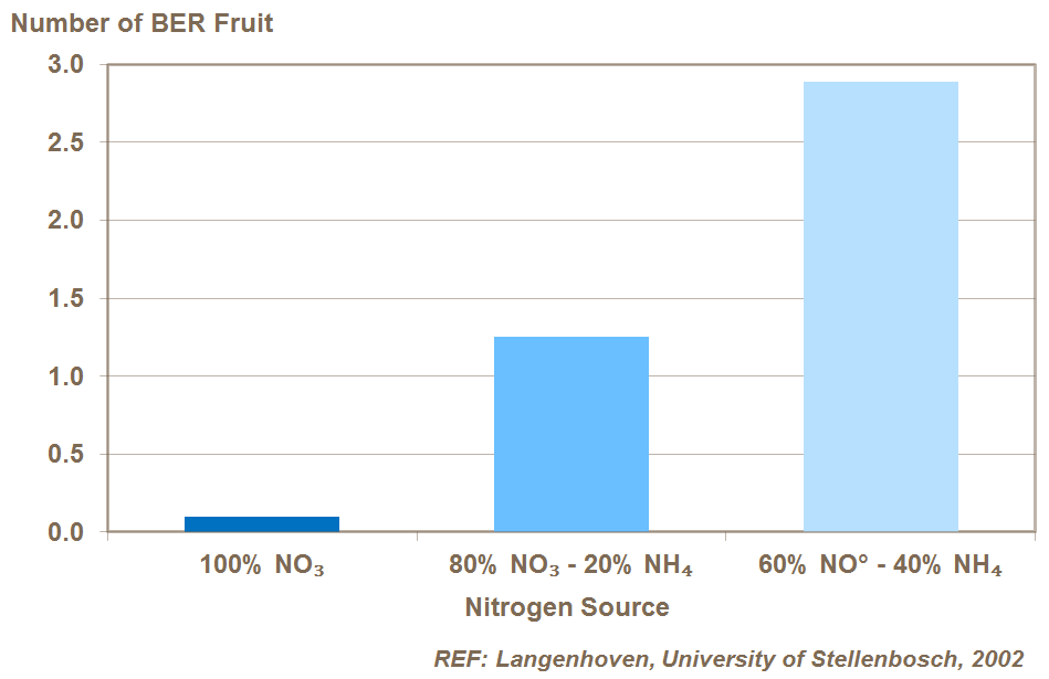 When ammonium is used after fruit set and when crops are under moisture stress, BER incidence is even greater, as shown in studies in US.